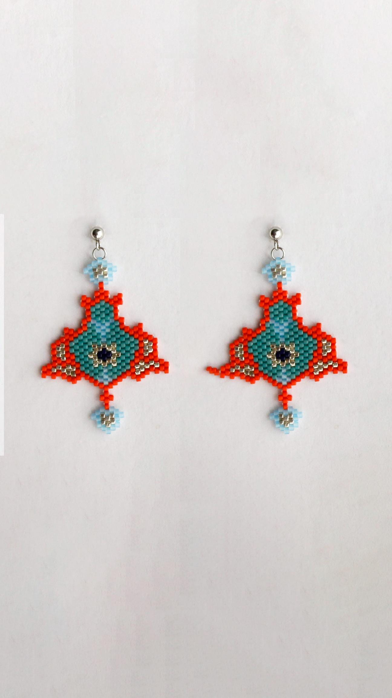 This earring is made from Japanese Miyuki beads and totally handmade. It is inspired by the tilework of the city of Shiraz, a place long associated with poetry, gardens, and artistic refinement. Shiraz tilework is known for its delicate floral motifs, flowing lines, and harmonious compositions that reflect a deep connection to nature and rhythm. These architectural patterns transform walls and domes into visual poetry. Drawing from this tradition, the earring reinterprets the spirit of Shiraz in a contemporary form, translating its softness, elegance, and artistic heritage into a wearable piece.